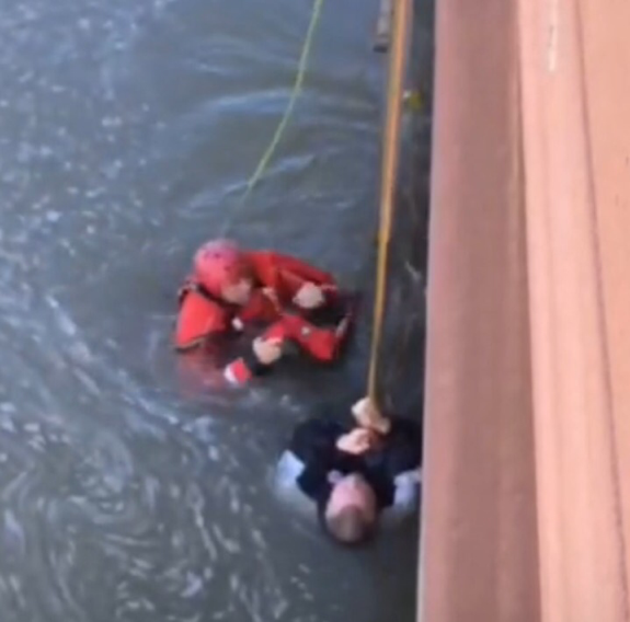 Rochester, NY Firefighter brings man up wall of Genesee river in downtown Rochester